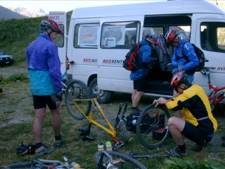 kurzen Reparaturpause ging es lange steil bergab (ca. 10 km bei 11 Grad C.)
